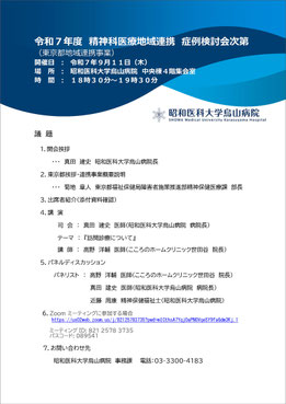 精神科医療地域連携事業の一環として、地域の医療関係者、先生方と行政の皆様のご協力のもと、2021年度(令和3年度)より症例検討会を開催しております。奮ってご参加いただけますよう、よろしくお願いいたします。
